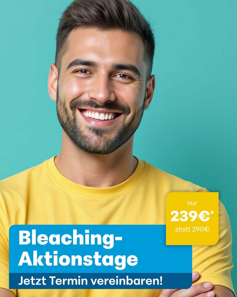 Strahlend weiße Zähne gehören heute für viele Menschen zum gepflegten Aussehen dazu. Zähne sind allerdings lebenslang belastet und dunkeln allmählich nach. Möchte man dem entgegenwirken, kann man etwas tun. Eine Professionelle Zahnreinigung (PZR) beim Zahnarzt entfernt oberflächliche Verfärbungen. Ein Bleaching hellt zusätzlich den Zahnschmelz auf. Soll die Behandlung effektiv und gleichzeitig schonend sein? Vertrauen Sie erprobten Methoden und dem qualifizierten medizinischen Personal im AllDent Zahnzentrum Wiesbaden!